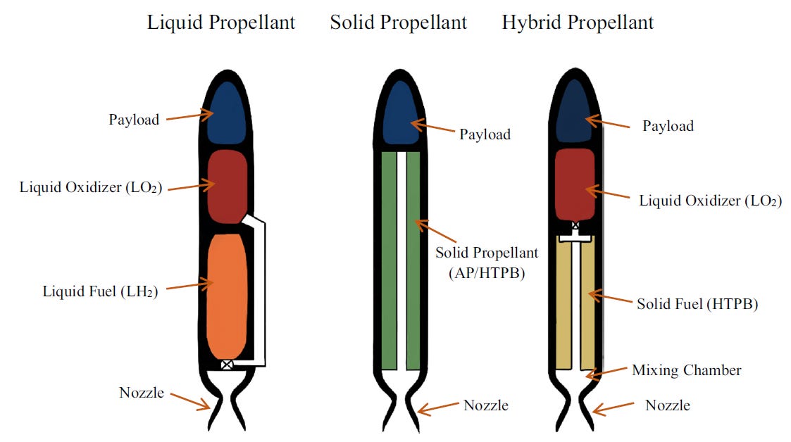 In theory, hybrids promise the best of both worlds: safer than pure liquids and more flexible than pure solids. In practice, however, they often deliver the drawbacks of both. Combustion can be uneven, hot gases may blow back into the oxidizer tank, and the fuel-to-oxidizer ratio is difficult to manage because the grain geometry changes as it burns. Their exhaust velocities, typically between 1,800 and 2,400 meters per second, are also lower than those of most solid or liquid engines, limiting their efficiency.